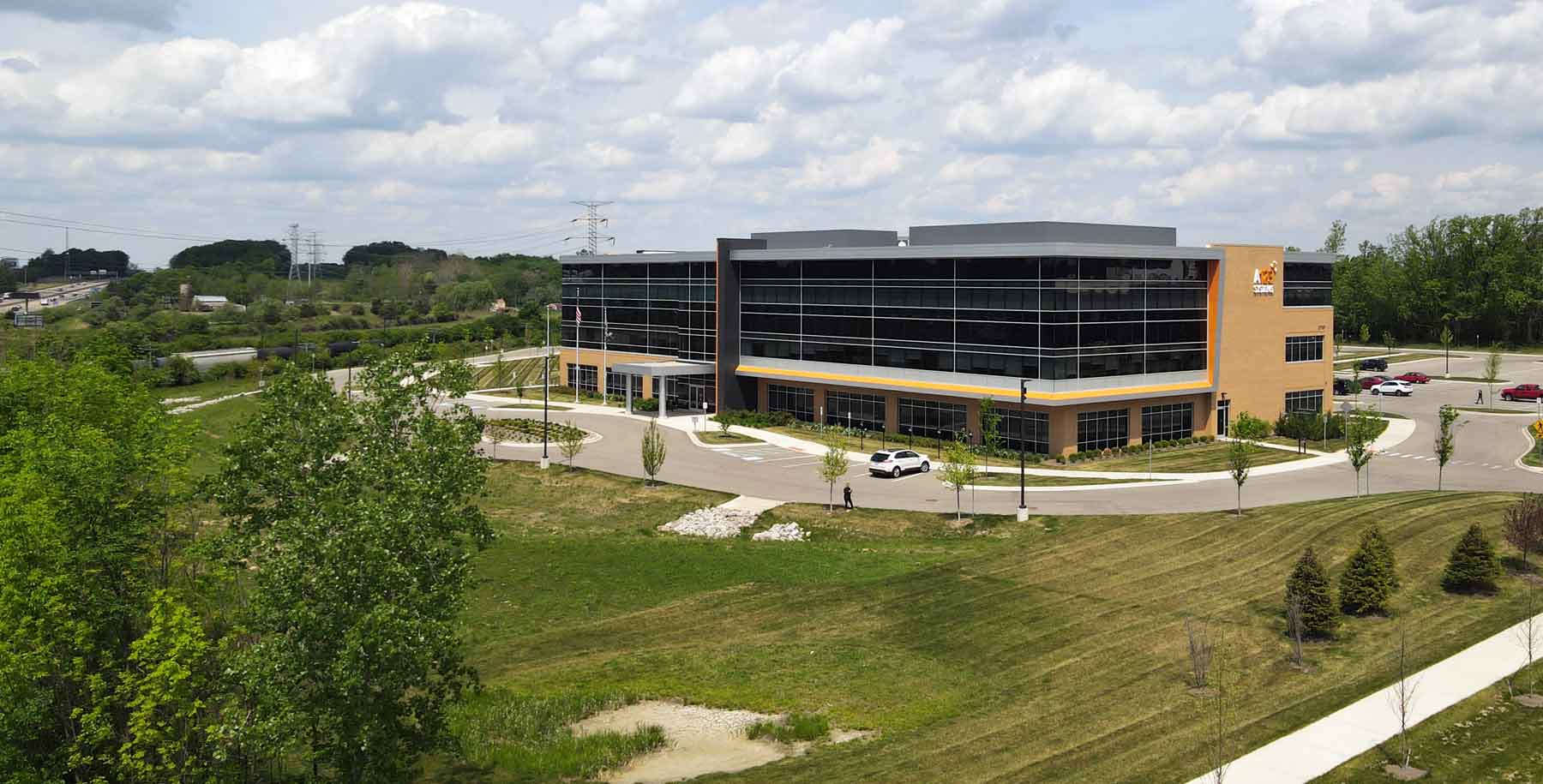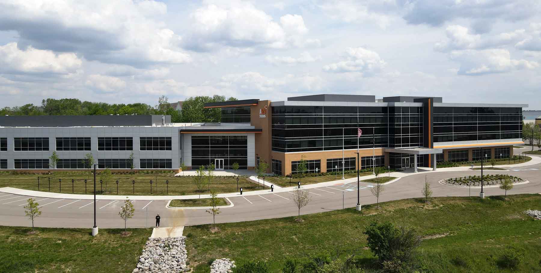 When A123 began construction on their new engineering center in Novi, MI, they turned to Liberty for their aluminum composite panels and wall system. This project consisted of weather resistive barrier, R-20 insulation with sub-framing, and aluminum composite panels installed by Liberty’s team. The composite panels include custom color orange accents along with many round column covers on both sides of the building.