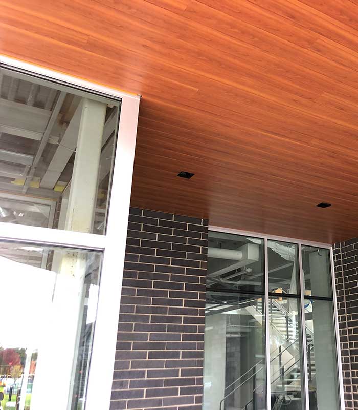 Woodgrain and composite panels combine the ageless beauty of woodgrain finish with the durability and reduced maintenance of aluminum panels. With dozens of large scale woodgrain projects under our belt, the team at Liberty Sheet Metal is ready to work with you to turn your concept into reality. We can build our woodgrain and composite panels to your specifications – regardless of scope or scale.